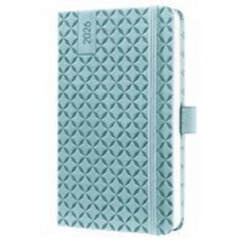 Agenda Jolie, Flair, Sky Blue, Hardcover, Maße (B/H): 9,5 x 15 cm, Buchkalender, 1 Woche/2 Seiten, Mit Gummibandverschluss, Stiftschlaufe und Einstecktasche, Mit Stickern, Flair