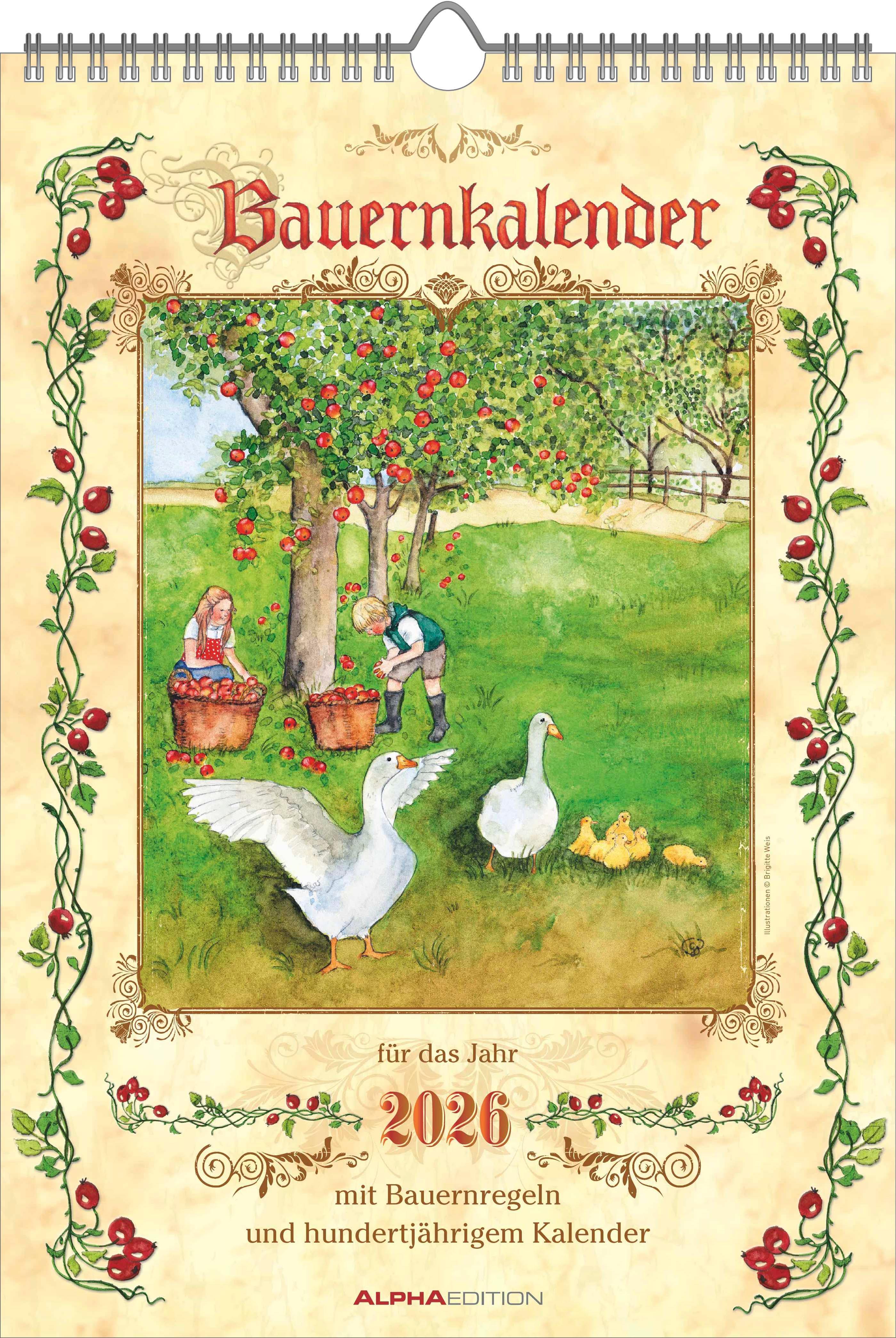 Genießen Sie traditionelles Wissen und humorvolle Lebensweisheiten – mit dem Alpha Edition Bauernkalender 2026. Monat für Monat erhalten Sie liebevoll illustrierte Kalenderblätter mit täglichen Wetterprognosen, bekannten Bauernregeln und unterhaltsamen Sprüchen rund um das Thema Wetter. Ein praktischer Planungshelfer und gleichzeitig ein charmantes Stück Landhausflair für Ihr Zuhause. Tradition & Humor: Tägliche Wetterprognosen, Bauernregeln und amüsante Lebensweisheiten rund ums Wetter Hochwertige Verarbeitung: FSC-zertifiziertes Papier (150 g/m² Bilderdruck) mit extrastarker Rückwand (1.000 g/m²), hergestellt in Deutschland Übersichtliches Kalendarium: Deutschsprachig mit Feiertagen für DE/AT/CH und Platz für Notizen Praktische Zusatzinfos: Jahresübersichten 2026/2027, 100-jähriger Kalender, Pollenflugkalender und Ferientermine (DE/AT/CH) auf den Rückseiten Stabile Ringbindung: Zum einfachen Umblättern und sicheren AufhängenDer Alpha Edition Bauernkalender 2026 vereint praktischen Alltagsnutzen mit ländlichem Charme – ideal für Küche, Wohnbereich oder als Geschenk für alle, die Bauernweisheiten und Tradition schätzen.