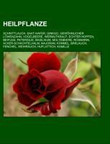 Quelle: Wikipedia. Seiten: 392. Kapitel: Schnittlauch, Saat-Hafer, Ginkgo, Gewöhnlicher Löwenzahn, Vogelbeere, Wermutkraut, Echter Hopfen, Beifuß, Petersilie, Basilikum, Moltebeere, Rosmarin, Acker-Schachtelhalm, Majoran, Kümmel, Bärlauch, Fenchel, Weihrauch, Huflattich, Kamille, Gewöhnliche Vogelmiere, Oregano, Balsam-Tanne, Arnika, Gemeine Schafgarbe, Ysop, Gewöhnliches Hirtentäschel, Echter Alant, Gänseblümchen, Wunderbaum, Europäische Stechpalme, Echtes Eisenkraut, Echter Eibisch, Kulturapfel, Olivenbaum, Gemeine Esche, Gemeiner Lein, Passiflora incarnata, Echte Feige, Gemeine Akelei, Echtes Johanniskraut, Wilde Malve, Ginseng, Gemeiner Wacholder, Echte Brunnenkresse, Krim-Pfingstrose, Sanddorn, Karotte, Schlafmohn, Echter Koriander, Moor-Birke, Knoblauch, Muskatnussbaum, Gemeine Nachtkerze, Tee, Schlehdorn, Gewöhnliche Kuhschelle, Maiglöckchen, Stevia rebaudiana, Schwarzer Holunder, Ingwer, Gewöhnliche Rosskastanie, Echtes Mädesüß, Waldmeister, Wald-Erdbeere, Gemeiner Efeu, Duftveilchen, Großfrüchtige Moosbeere, Schneerose, Kalifornischer Mohn, Hänge-Birke, Roter Fingerhut, Bockshornklee, Herbst-Zeitlose, Quitte, Sommer-Linde, Indisches Basilikum, Borretsch, Anis, Rainfarn, Beinwell, Echter Lavendel, Gift-Lattich, Kurkuma, Arznei-Engelwurz, Bittermelone, Echter Beinwell, Schöllkraut, Silberdistel, Heidelbeere, Gewöhnlicher Blutweiderich, Kalmus, Echter Arznei-Baldrian, Gewöhnliche Osterluzei, Virginische Zaubernuss, Gartenkürbis, Luo Han Guo, Ringelblume, Pfefferminze, Gemeine Pfingstrose, Schmalblättriger Sonnenhut, Gewöhnliche Haselwurz, Faulbaum, Chayote, Hintonia latiflora, Echter Lorbeer, Gemeiner Wirbeldost, Indischer Hanf, Echter Salbei, Artischocke, Senna alexandrina, Blauer Eisenhut, Ballonerbse, Zitronen-Melisse, Juckbohne, Rotwurzel-Salbei, Dreilappige Papau, Frauenminze, Katzenkralle, Ceylon-Zimtbaum, Kleine Braunelle, Chinesische Jujube, Dornige Hauhechel, Kleiner Wiesenknopf, Diptam, Deutscher Estragon, Ackerlauch, Acker-Gauchheil, Besenginster, Strauch-Rosskastanie, Gewöhnlicher Andorn, Liebstöckel, Trauben-Silberkerze, Frühlings-Adonisröschen, Acker-Schöterich, Gänsefingerkraut, Wurmsamen, Zimbelkraut, Chinesisches Spaltkörbchen, Giersch, Blutwurz, Südseemyrte, Mönchspfeffer, Lichtnussbaum, Indischer Wassernabel, Katappenbaum, Plantago ovata, Echte Aloe, Schwarzer Senf, Igelstachelbart, Eberraute, Spitzwegerich, Indische Kostuswurzel, Großer Wiesenknopf, Sommer-Bohnenkraut, Angenehme Akelei, Diptam-Dost, Echtes Herzgespann, Yohimbe, Frühlingslichtblume, Römische Kamille, Geißraute, Heil-Ziest, Mariendistel, Isländisches Moos, Mutterkraut, Afrikanischer Faulbaum, Verek-Akazie, Geflecktes Lungenkraut, Große Sterndolde, Strahlenlose Kamille, Warburgia salutaris, Epazote, Weg-Rauke, Okoubaka aubrevillei, Echter Thymian, Echte Bärentraube, Gerber-Akazie, Breitwegerich, Gewöhnliche Goldrute, Echtes Leinkraut, Echtes Labkraut, Echter Ehrenpreis, Rangunschlinger, Zitwerwurzel, Cardy, Blauer Eukalyptus, Kalumba, Griechischer Oregano, Kleeulme, Gemeiner Augentrost, Hawaiianische Holzrose, Ackerwinde, Meerzwiebel, Stephanskraut, Gynostemma pentaphyllum, Borstige Taigawurzel, Christusdorn, Afrikanische Teufelskralle, Benediktenkraut, Kleine Brennnessel, Gebirgs-Rose, Großes Flohkraut, Indische Narde, Kinkéliba, Aromata, Acorus americanus, Heilpflanze des Jahres, Bischofskraut, Grüne Minze, Ajowan, Boswellia sacra, Smilax officinalis, Echter Galgant, Cootamundra-Akazie, Moschus-Malve, Arzneipflanze des Jahres, Aquilegia kitaibel...