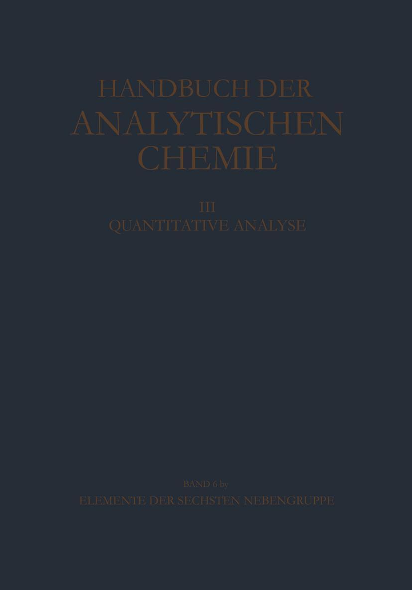 1 Die analytische Chemie des Wolframs.- 1.1 Analytisch genutzte Eigenschaften des Wolframs.- 1.2 Übersicht über die Trenn- und Bestimmungsverfahren für Wolfram.- 2 Probenvorbereitung.- 2.1 Probenahme.- 2.2 Löseverfahren für Metalle und einfache Verbindungen.- 2.3 Löseverfahren für Erze.- 2.4 Zerstörung von biologischem Material.- 2.5 Spurenanreicherung.- 2.6 Flüchtigkeit von Wolfram(VI)-oxid.- 3 Trennverfahren.- 3.1 Extraktionsverfahren.- 3.2 Trennung durch Anionenaustausch.- 3.3 Trennung durch Kationenaustausch.- 3.4 Verschiedene chromatographische Verfahren.- 3.5 Trennung durch Fällung und Mitfällung.- 3.6 Trennung durch Verflüchtigung.- 4 Gravimetrie.- 4.1 Abscheidung von Wolframsäure durch Säuren allein.- 4.2 Abscheidung von Wolframsäure unter Zusatz basischer Fällungsmittel.- 4.3 Fällung von Metallwolframaten.- 4.4 Fällung und Wägung von Chelaten.- 4.5 Bestimmung als Wolframatophosphat.- 5 Maßanalyse.- 5.1 Reduktometrische Titration.- 5.2 Oxydimetrische Titration.- 5.3 Azidimetrische Titration.- 5.4 Fällungstitration.- 5.5 Indirekte Titration.- 6 Photometrie.- 6.1 Bestimmung mit anorganischen Reagenzien.- 6.2 Bestimmung mit organischen Reagenzien.- 7 Spektralanalyse.- 7.1 Spektrale Eigenschaften des Wolframs.- 7.2 Verdampfungsverhalten und Matrixeinflüsse.- 7.3 Anreicherungsverfahren.- 7.4 Bestimmung durch Lösungsspektralanalyse.- 7.5 Anwendung von chemischen und Plasmaflammen.- 7.6 Spektrometrische Analyse fester Stahlproben.- 7.7 Analyse von Wolframcarbid-Hartmetallen nach Knott, Kinson und Belcher.- 7.8 Analyse von Molybdän und Molybdäntrioxid.- 7.9 Bestimmung von Wolfram und Molybdän in Nioboxid.- 7.10 Analyse von Silicium nach Vecsernyes.- 7.11 Analyse von Silikaten und Sulfiden.- 7.12 Bestimmung in verschiedenen Materialien.- 8Atomabsorptionsspektralanalyse.- 8.1 Standardbedingungen.- 8.2 Bestimmung in Werkzeugstahl mit 2 bis 6 % Wolfram.- 8.3 Bestimmung in legierten Stählen.- 8.4 Bestimmung in Stahl.- 8.5 Bestimmung in Hochtemperatur-Nickellegierungen.- 8.6 Bestimmung in Hochtemperatur-Kobaltlegierungen.- 8.7 Bestimmung in Uranlegierungen.- 8.8 Bestimmung in Silicatgesteinen.- 8.9 Bestimmung in Erzen nach Extraktion des Wolframs.- 8.10 Schnellbestimmung in Erzen und Konzentraten.- 8.11 Bestimmung in Niob.- 8.12 Bestimmung in sonstigen Materialien.- 9 Fluorimetrie.- 9.1 Bestimmung mit Flavonol.- 9.2 Bestimmung mit Carminsäure.- 9.3 Bestimmung mit sonstigen Reagenzien.- 10 Polarimetrie.- 10.1 Bestimmung mit D-Weinsäure.- 11 Katalytisch-elektrochemische Verfahren.- 11.1 Bestimmung mit potentiometrischer Anzeige.- 11.2 Bestimmung mit amperometrischer Anzeige.- 12 Polarografie.- 12.1 Das polarografische Verhalten des Wolframs.- 12.2 Verfahren mit Gleichspannung.- 12.3 Verfahren mit Wechselspannung.- 12.4 Oszillopolarografische Verfahren.- 12.5 Bestimmung durch Inverspolarografie.- 13 Thermometrie.- 13.1 Kinetisch-thermometrische Bestimmung von Wolframspuren.- 13.2 Direkt-thermometrische Bestimmung von Wolframat.- 14 Radiochemische Verfahren.- 14.1 Aktivierung mit thermischen Neutronen.- 14.2 Sonstige Aktivierungsverfahren.- 14.3 ?-Rückstreuung.- 14.4 Gamma-Absorptionsverfahren.- 14.5 Radiometrische Titration.- 14.6 Isotopenverdünnungsverfahren.- 15 Röntgenfluoreszenzanalyse.- 15.1 Verfahren für Erze.- 15.2 Verfahren für Stahl und Eisen.- 15.3 Verfahren für Hartmetalle.- 15.4 Verfahren für Molybdän.- 15.5 Verfahren für Tantal-Wolfram-Legierungen.- 16 Sonstige Bestimmungsverfahren.- 16.1 Röntgenabsorption.- 16.2 Massenspektrometrie.- 16.3 Gaschromatographie.- 17 Untersuchungspezieller Wolframverbindungen.- 17.1 Heteropolysäuren.- 17.2 Wolframbronzen.- 17.3 Niederwertige Oxide.- 17.4 W6-Komplexe (Cluster).- 17.5 Cyanowolframate(IV).- Verzeichnis der Zeitschriften und ihrer Abkürzungen.