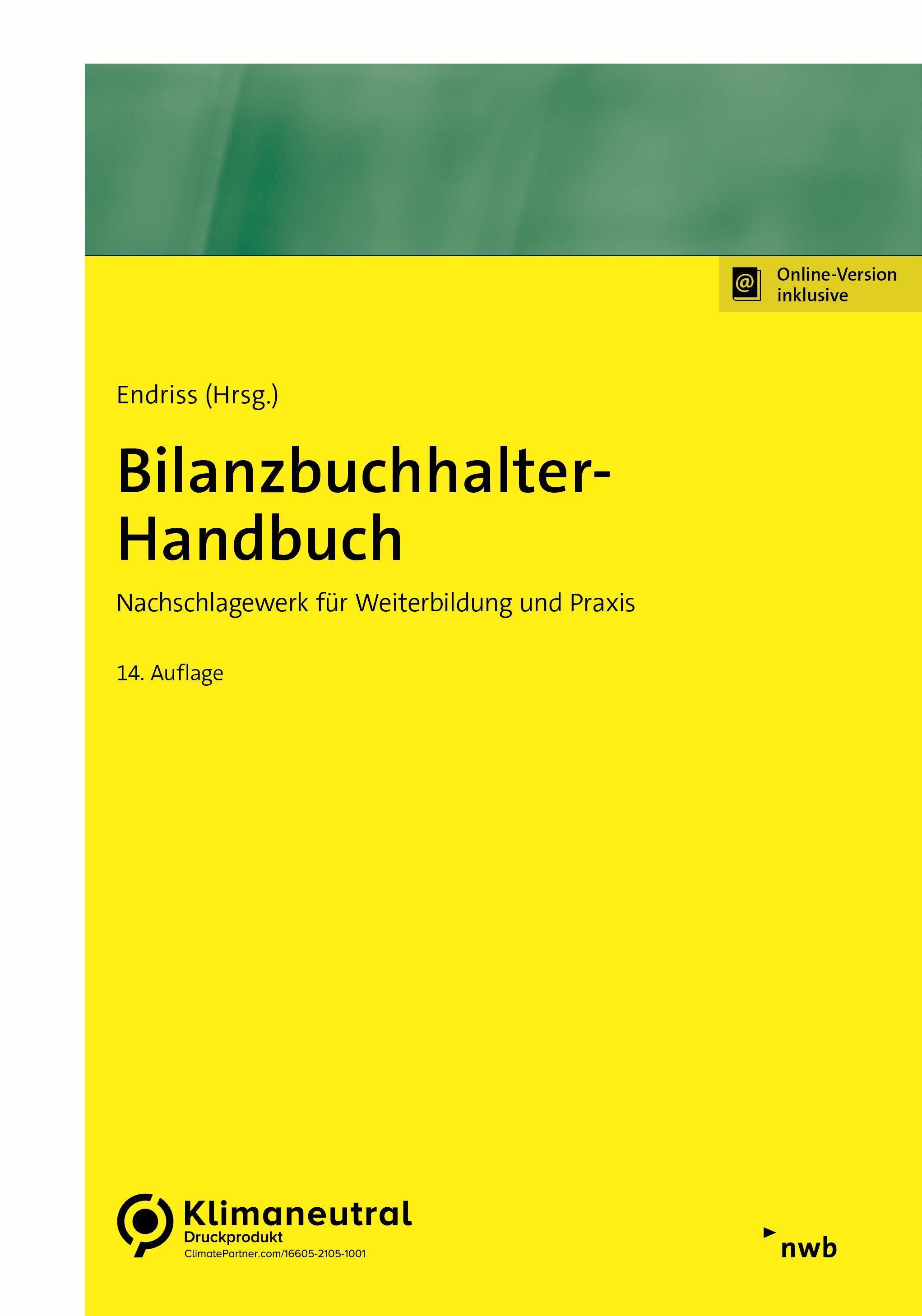Das Standardwerk für Bilanzbuchhalter. Für Weiterbildung und Praxis! Mit dem Bilanzbuchhalter-Handbuch sind Sie immer auf der sicheren Seite! In kompakter Form hält dieses Standardwerk genau das Wissen parat, das Sie für die praktische Arbeit oder für die Vorbereitung auf die Prüfung zum Bilanzbuchhalter benötigen. Der Aufbau des Handbuchs orientiert sich dabei an den Herausforderungen der täglichen Praxis sowie an den Inhalten der offiziellen Prüfungsverordnung vom 18.12.2020 (VO 2020) und konzentriert sich insbesondere auf die folgenden Themen: - Buchführung, Jahresabschluss (Einzelabschluss, Handels- und Steuerbilanz), Konzernabschluss, Grundlagen internationaler Rechnungslegung und Berichterstattung (Jahresabschlussanalyse sowie volks- und betriebswirtschaftliche Grundlagen);- Steuerrecht und betriebliche Steuerlehre (Einkommensteuer, Lohnsteuerabzugsverfahren, Körperschaftsteuer, Gewerbesteuer, Umsatzsteuer, Internationales Steuerrecht, Abgabenordnung); - Laufende Besteuerung und Steuerauswirkungen bei einzelfallbezogenen Problemen wie Rechtsformwahl, Zusammenschlüssen oder Umwandlungen- Kosten- und Leistungsrechnung als Controllinginstrument, Finanzwirtschaftliches Management zur effizienten Unternehmensführung und -steuerung inkl. kostenorientiertem Controlling und Risikomanagement- Wichtige Rahmenbedingungen wie Recht (inkl. Handels- und Gesellschaftsrecht, Sachenrecht, Gewerberecht, Bürgerliches Gesetzbuch und Internetrecht), Sozialversicherung, Berufswesen und -recht sowie Personalführung. Die 14. Auflage wurde vollständig überarbeitet und berücksichtigt zahlreiche Änderungen durch die Gesetzgebung und Rechtsprechung. Inhaltsverzeichnis: - Buchführung- Jahresabschluss (Einzelabschluss, Handels- und Steuerbilanz)- Konzernabschluss und Grundlagen internationaler Rechnungslegung- Berichterstattung (Jahresabschlussanalyse sowie VWL- und BWL-Grundlagen)- Steuerrecht und betriebliche Steuerlehre (ESt, Lohnsteuerabzugverfahren, KSt, GewSt, USt, Internationales Steuerrecht und AO)- Rechtsformwahl, Unternehmenszusammenschlüsse, Umwandlungsfragen- Praxis der Unternehmensführung und -steuerung (Kosten- und Leistungsrechnung als Controllinginstrument, Finanzwirtschaftliches Management und Risikomanagement)- Recht- System der sozialen Sicherung und Sozialversicherung- Berufswesen und -recht- Personalführung- Glossar zum Rechnungswesen Deutsch-Englisch
