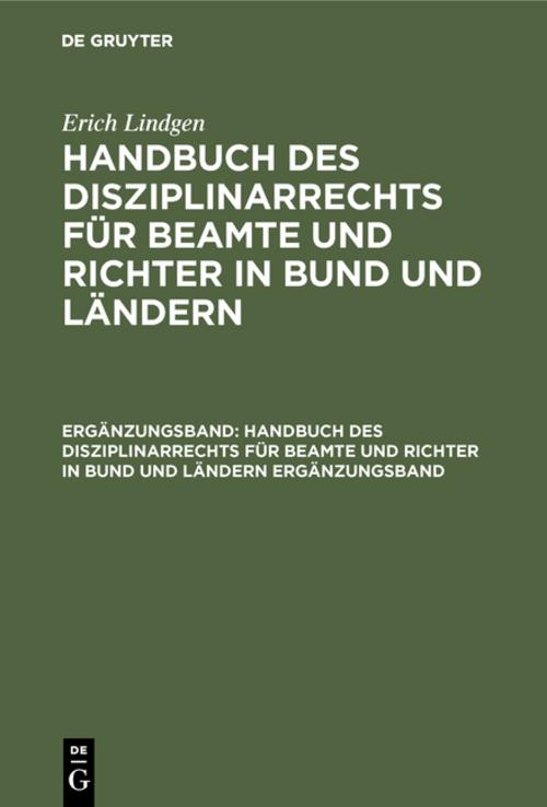 Erich Lindgen: Handbuch des Disziplinarrechts für Beamte und Richter in Bund und Ländern. Ergänzungsband