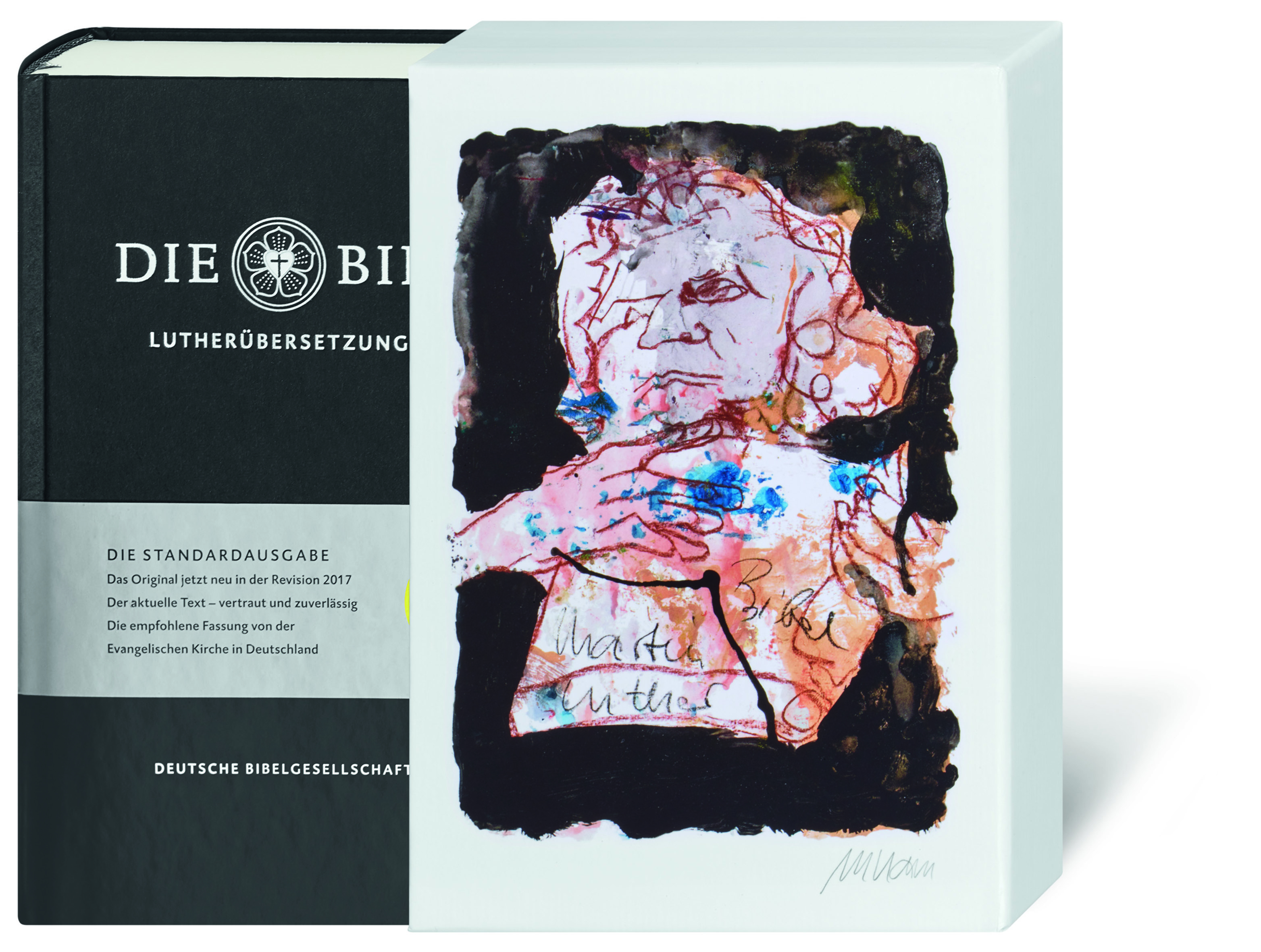 Anlässlich des Jubiläums 500 Jahre Reformation haben Prominente individuelle Buchschuber für die Lutherbibel 2017 in einer limitierten Auflage gestaltet. Als Grundlage seiner Gestaltung wählte der Schauspieler Armin Mueller-Stahl den Bibelvers "Gott ist unsere Zuversicht und Stärke, eine Hilfe in den großen Nöten, die uns getroffen haben (Psalm 46,2)